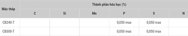 Thành phần hóa học các chất (C, Si, Mn, P, S, …) và tính chất cơ lý của sắt thép cuộn Việt Nhật được quy định cụ thể trong tiêu chuẩn TCVN 1651-1:2018, cụ thể ở bảng sau:
