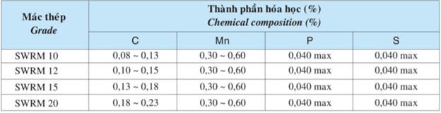 • Mác thép: CB240-T và CB300-T, SWRM10, SWRM12, SWRM15, SWRM20