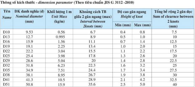• Tiêu chuẩn: TCVN 1651-2:2018, JIS G3112 – 2010, ASTM A615/A615M-18